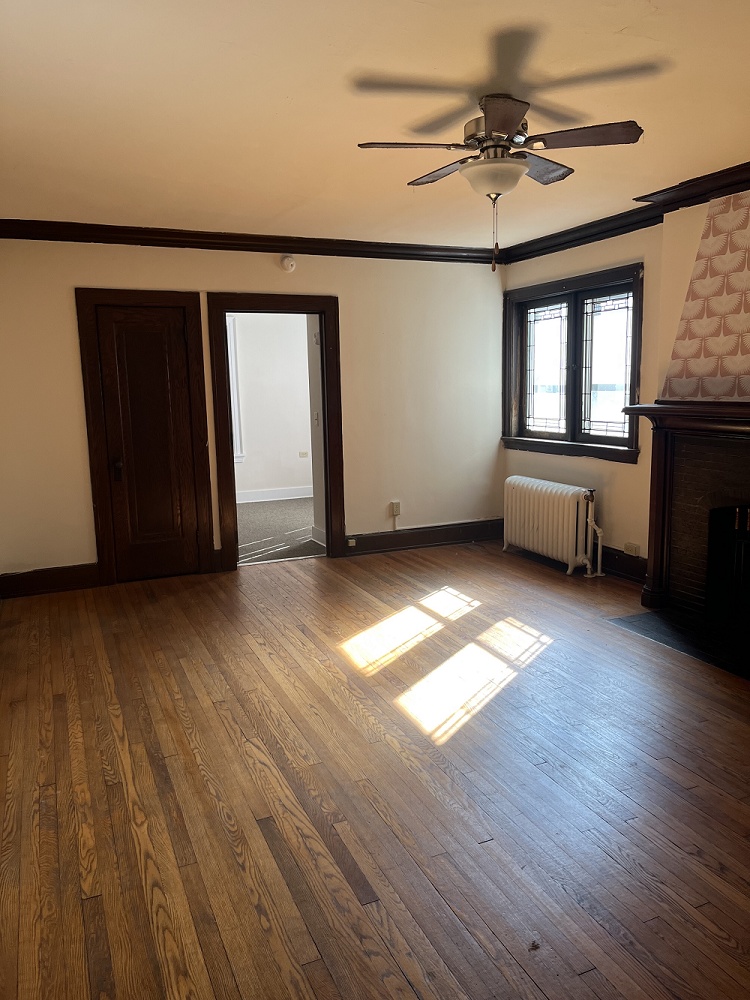 One bedrooms with large living room, ceiling fan, skylight, decorative fireplace and hardwood floors. Two bedroom is a two level townhouse style apartment with one bedroom on each floor.